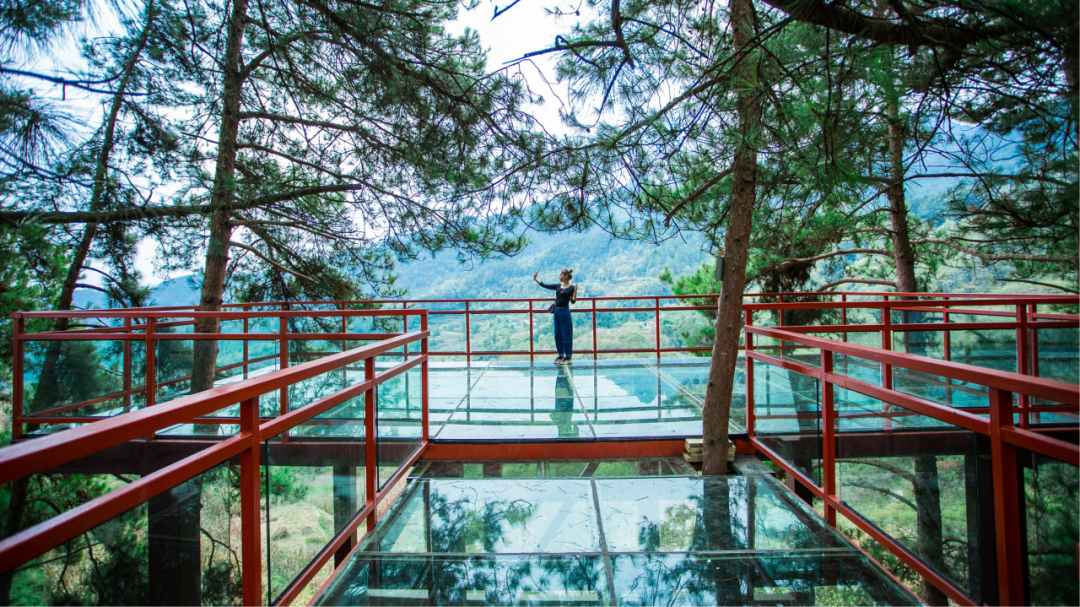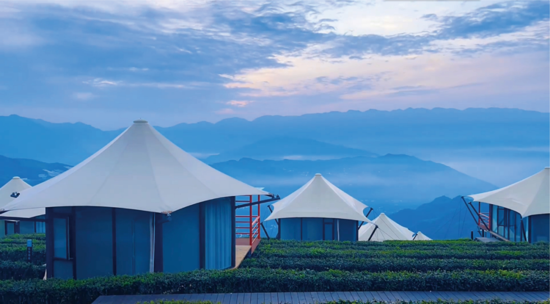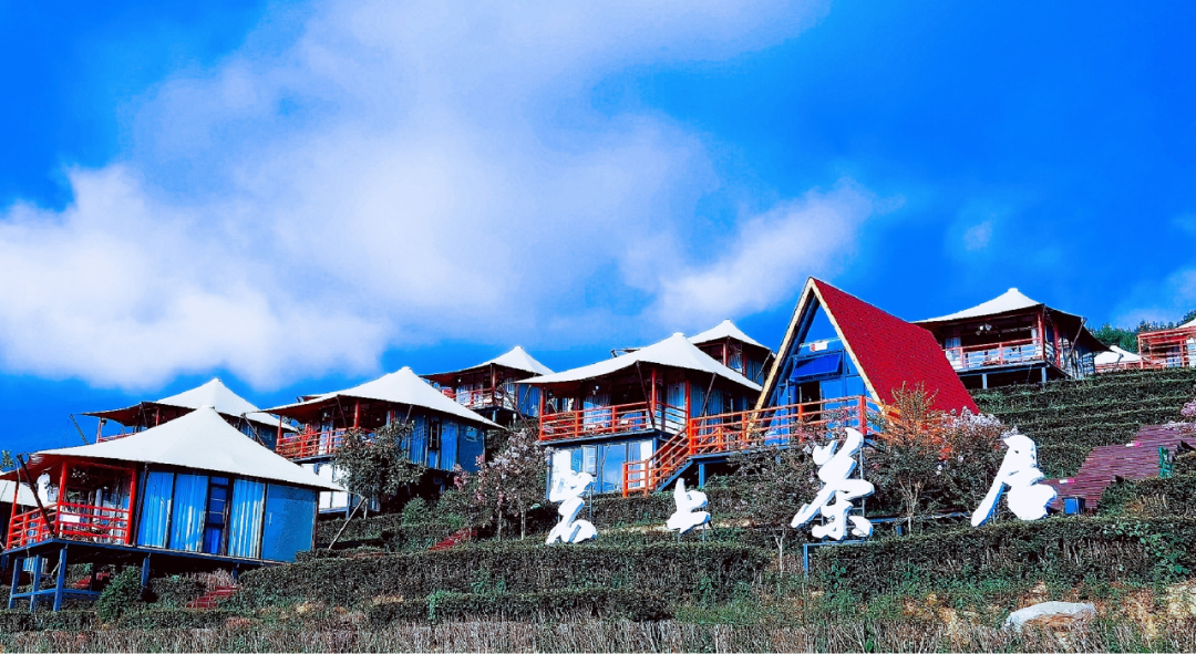 岩上茶居是一家全景酒店,独栋的帐篷式玻璃全景房,坐落在茶园之上,阳台上就能眺望远方的“仙女山”。这里不论是观日出还是看星海,都是绝佳之地。
