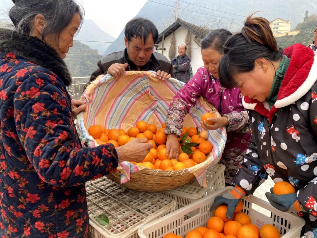 村民们正在帮陈宏艳采摘脐橙。