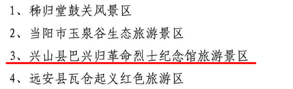 1月17日,宜昌市文化和旅游局发布公告,确定4家景区为国家3A级旅游景区,兴山县巴兴归革命烈士纪念馆旅游景区名列其中!