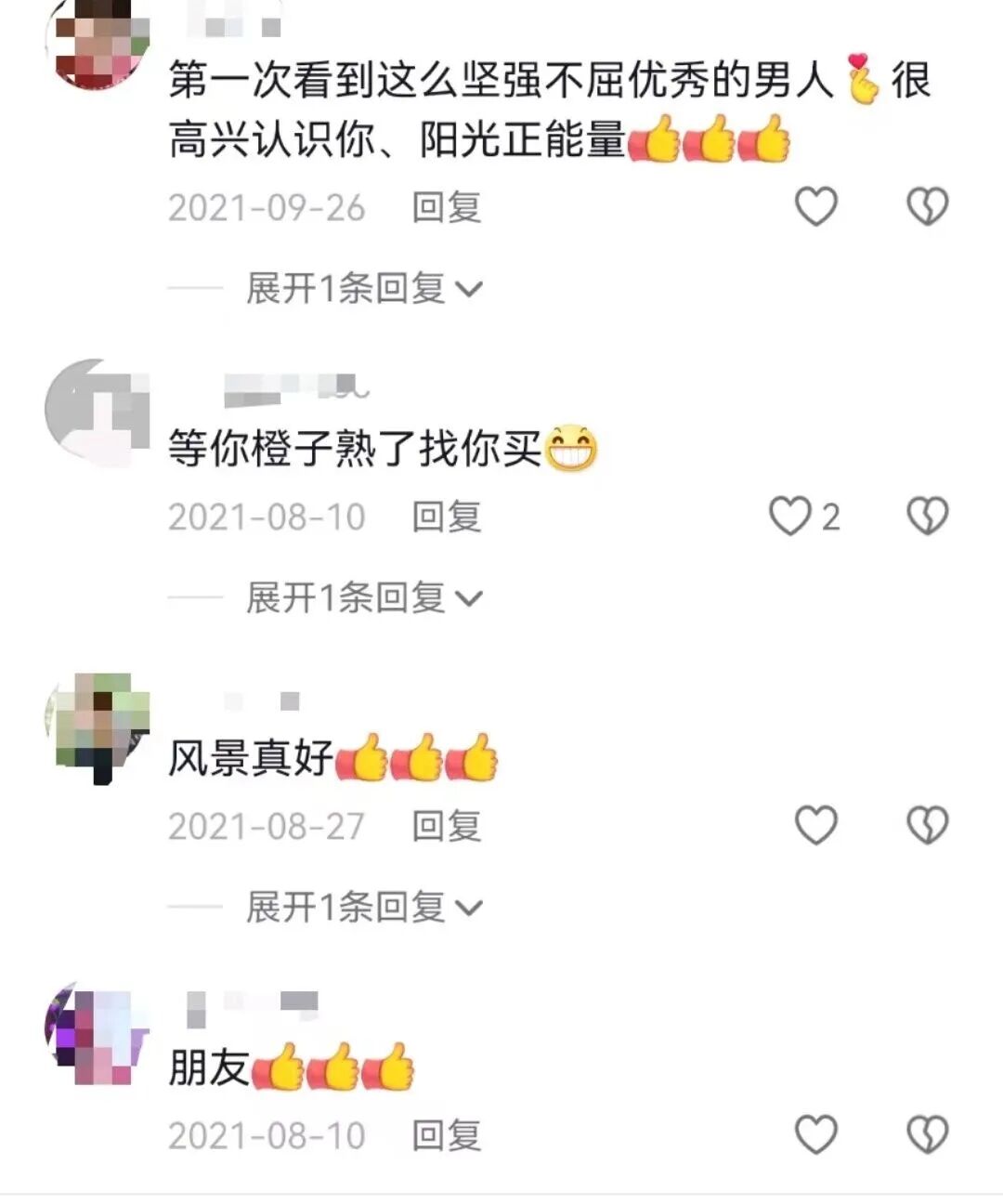 “现摘现发的橙子确实好吃”“太励志了,果断下单支持一下”。