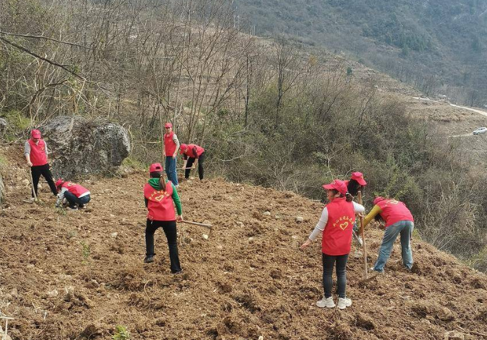 兴山县高桥乡红军小学组织校教职员工前往伍家坪村参加义务植树活动。