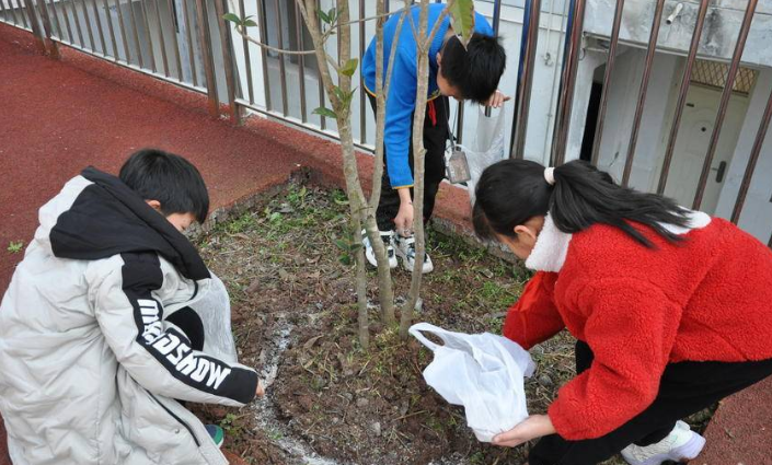 学校以班级为单位,将校园内的小树视为自己的“主人”,并开展了一系列主题教育活动,引导孩子们用自己的双手创造优美的环境,增强孩子们的爱护花草树木的责任意识,让栽花植绿成为一种生活方式。