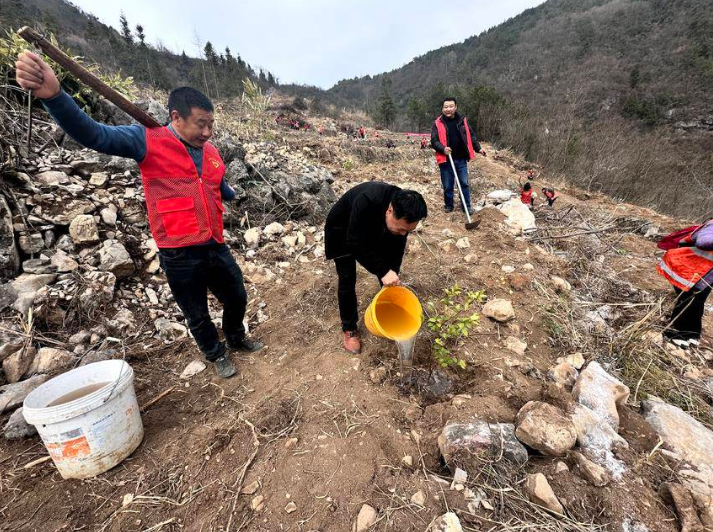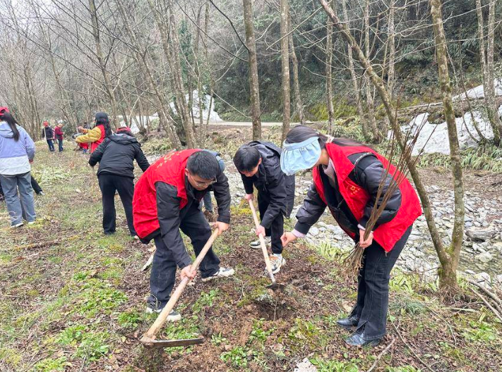 兴山县委宣传部、 兴山县总工会组织干部职工来到帮扶村昭君镇陈家湾村,联合开展义务植树活动。