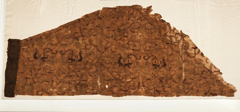 褐色绢帽、龙凤虎纹绣罗单衣袖、