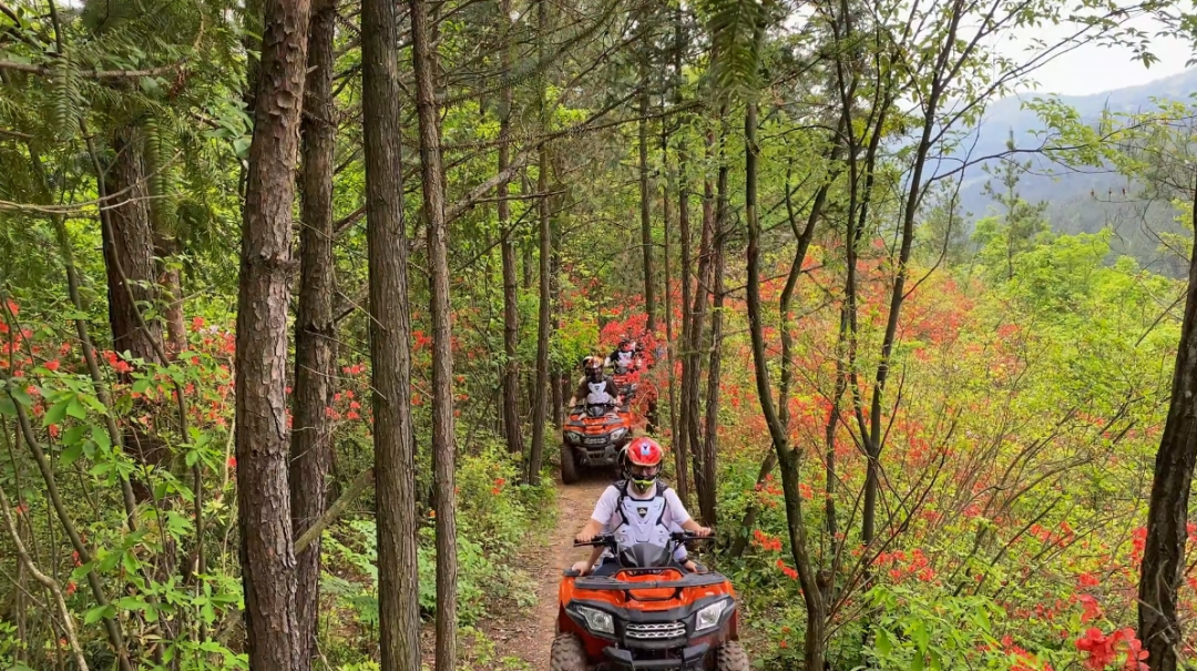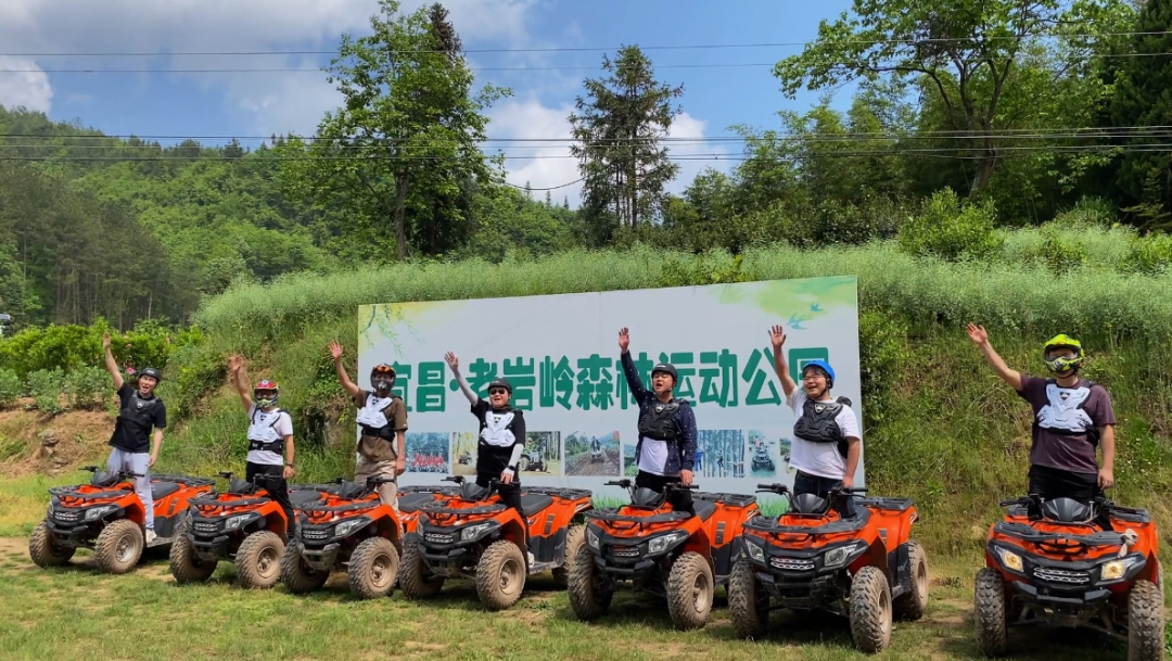走进老岩岭森林运动公园内,慕名前来的游客正在专业教练的指导下,驾驶山地车驰骋在崎岖山路上,穿越丛林、陡坡,感受山地越野带来的强烈心跳冲击与欢乐。游客们驾驶着山地车自由穿梭在山林和茶园之间,体验起伏不平的茶园路、磨练耐力的长陡坡、考验技术的大急弯,感受着在城市中无法体验到的驾驶乐趣。