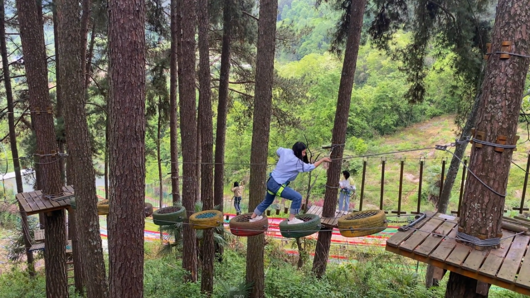 运动公园内还能欣赏到百年大杉树,让你在玻璃栈道上体验凌空行走的神奇。游客还可以体验丛林穿越、高空滑索、彩虹滑道、攀岩等丰富多样的活动,参与游乐互动,挑战惊险刺激。