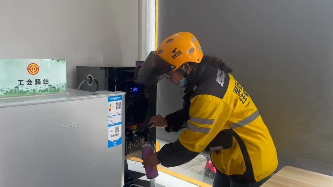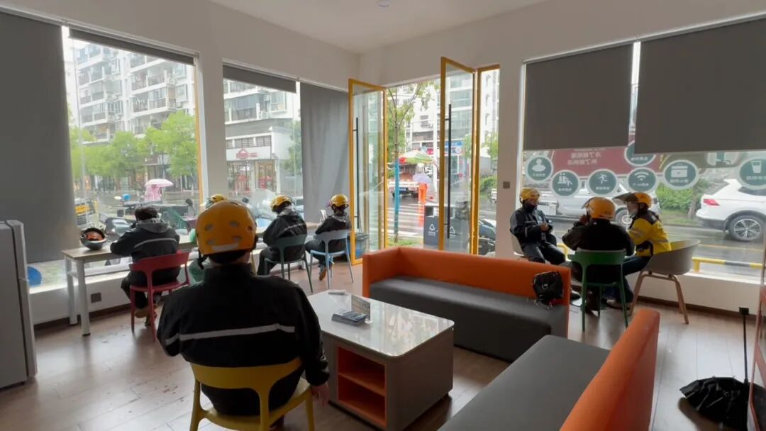 驿站内沙发、靠背椅、茶歇桌、冰箱、空调、电视、微波炉一应俱全,还设置了直饮水机、便民服务柜和书柜。外卖骑手杨丽容曾经最担心的事情就是手机续航难题,每天早上满格电量,中午跑完单后就已经电量告急。如今,驿站里设施设备齐全,随时可以来休息充电,俨然已成为“街道上的家”。