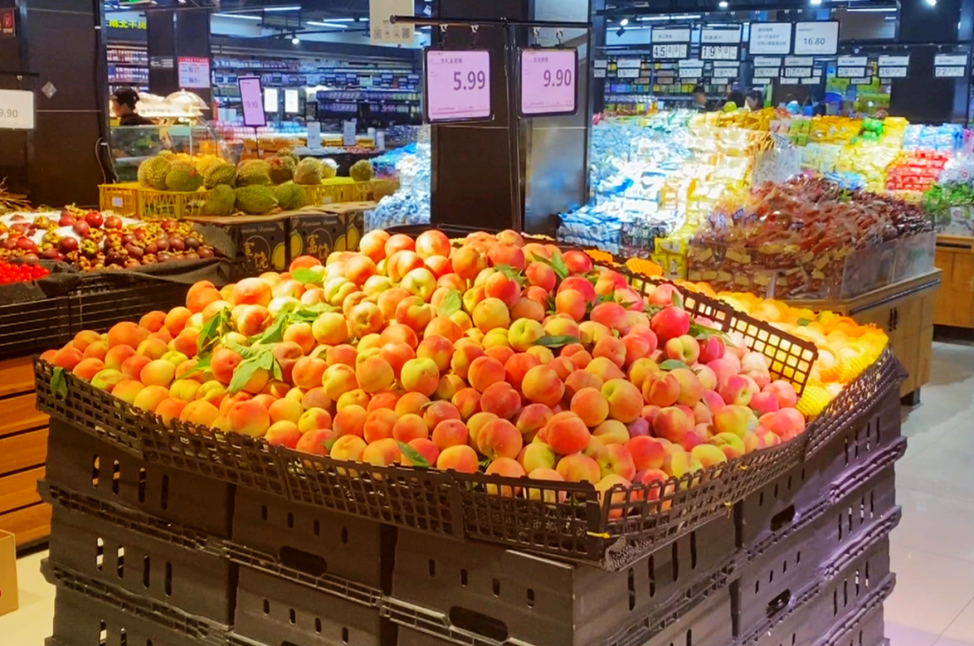 除了在网上得到了大家的认可,在线下,大家翘首以待,等待着果子成熟。就这样,王远兴的鲜桃走进了当地的商超里。