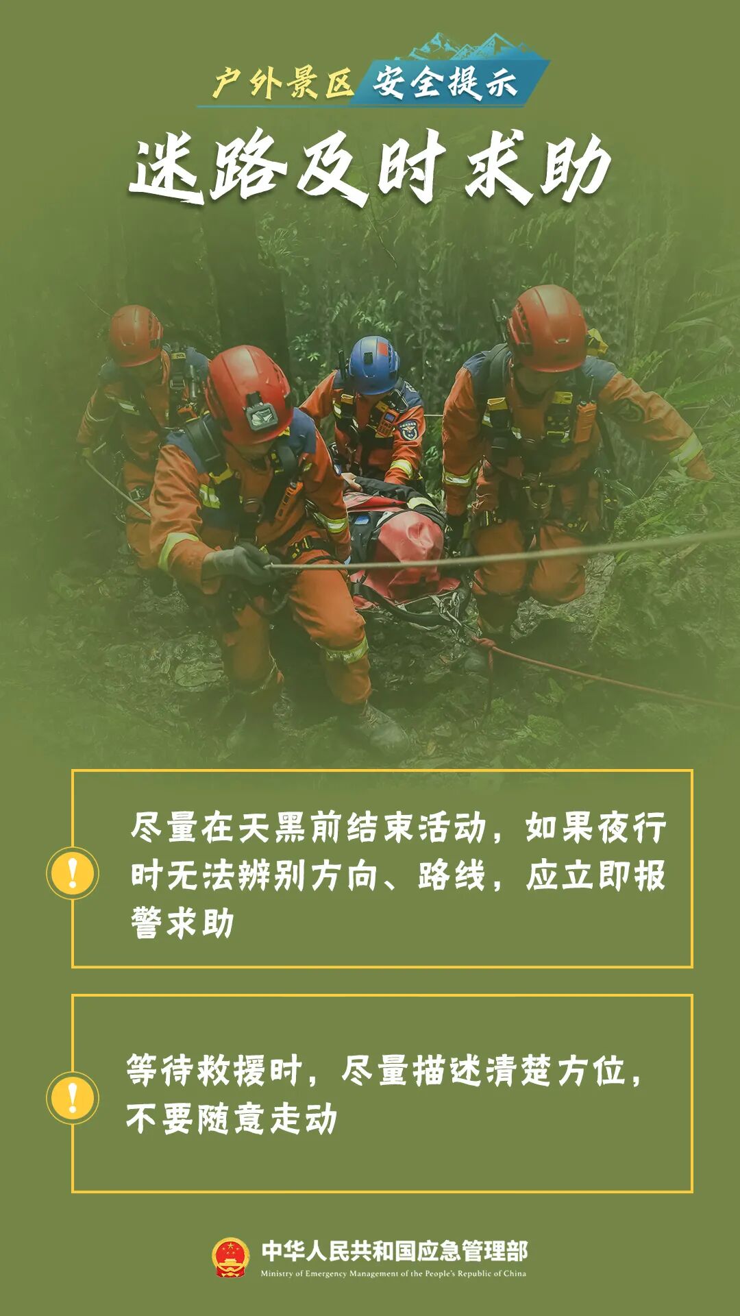 景区游玩,这份安全攻略提前了解! 2024-08-12 10:20 0 外出游玩 如何做好自身安全防范? 这些安全提示请收好 ↓↓↓ 景区打卡 要警惕哪些安全隐患? 这份攻略,你得“码”住! ↓↓↓ 来源 | 中国应急管理报融媒体工作部 编辑 | 郝小芳 编审 | 张雅莉 终审 | 吴健
