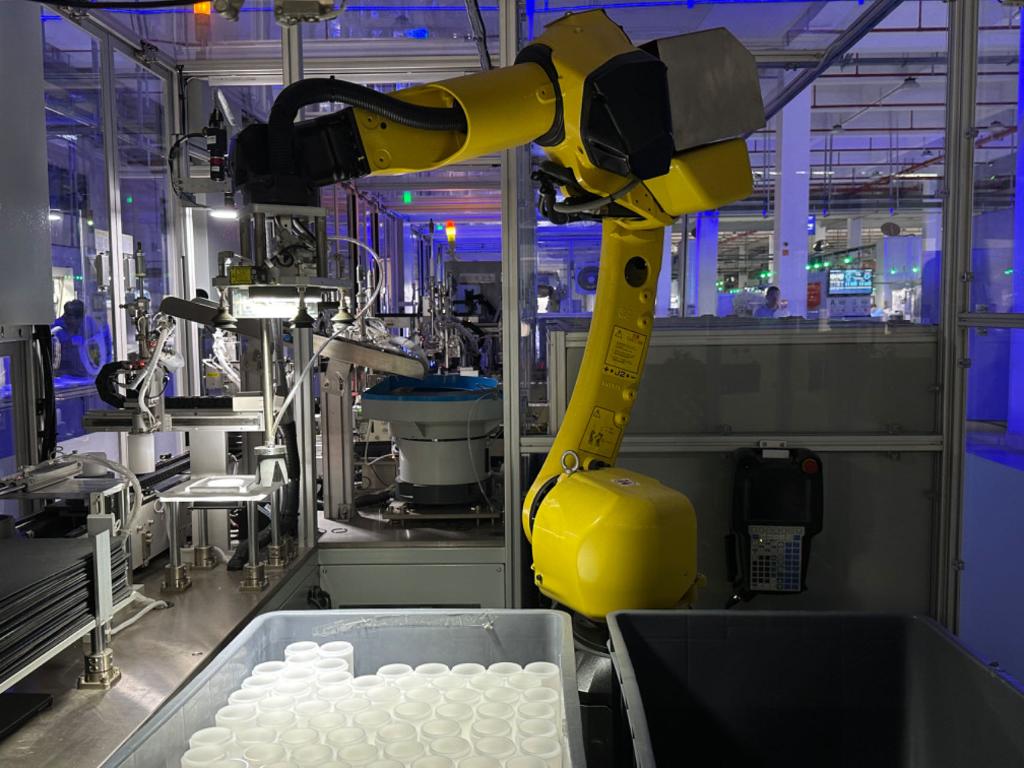 南安一家卫浴企业生产线上,机械臂正在抓取过滤器零件。新华社记者 庞梦霞 摄