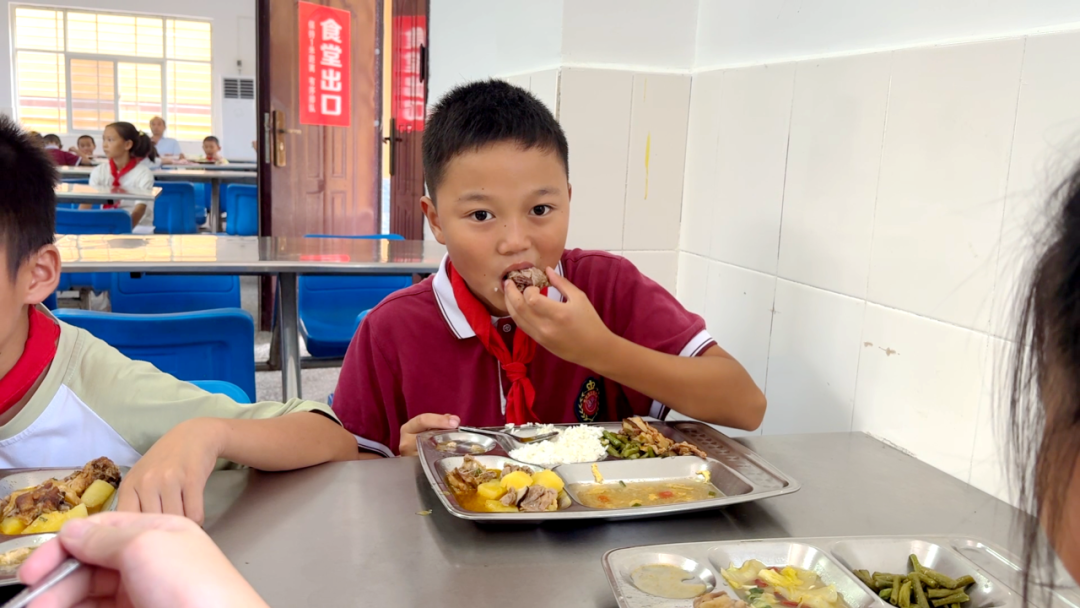 自2024年9月1日起,全县17所小规模学校和幼儿园食堂工人工资全额纳入财政保障。如今,南阳镇中心小学的食堂员工每天都变着花样给孩子们做饭,面食、炒菜、煲汤.......食材更加丰盛,种类也变多了,孩子们开心极了。
