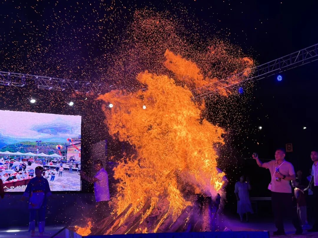 夜幕降临,伴随着微风,在璀璨的星空下,大家手牵手、肩并肩,围着熊熊燃烧的篝火,共唱土家民歌,共跳土家摆手舞。主办方还准备了免费的烧烤、特色美食等供大家品尝,现场气氛其乐融融。