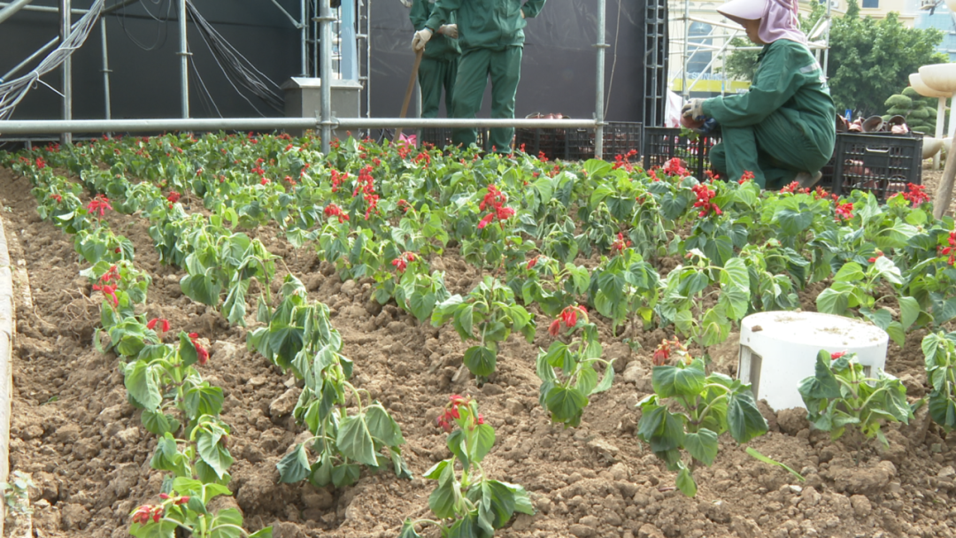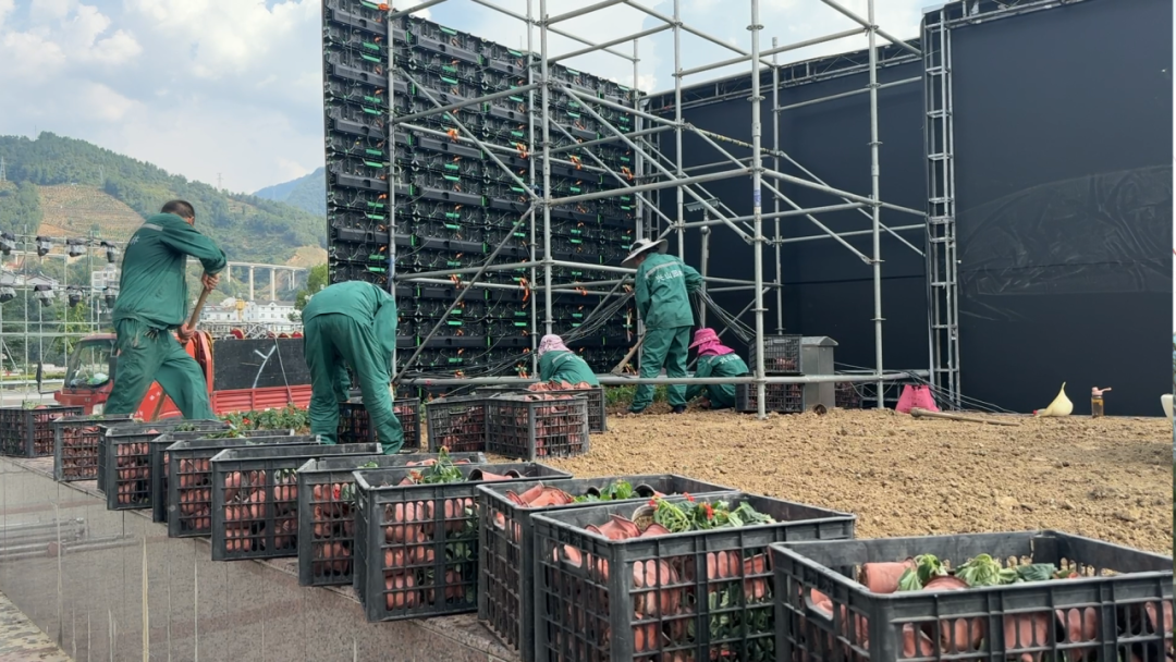 9月10日上午,记者在昭君广场看到,工人们正在搭建场外展台和舞台布景;园林工作人员舞台周边,开展花卉栽植、补植工作,为活动增绿、增靓。
