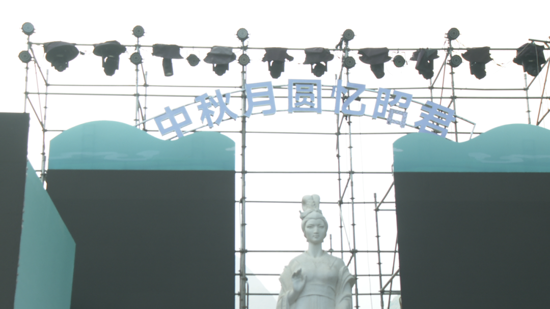2024年“中秋月圆忆昭君”活动开幕式舞台负责人黄海说:“这次的舞台以“中秋”和“昭君”为主要元素,舞台长18米、宽6米、高5米,分为四幕式搭建,凸显出昭君文化主题。舞台的主色调为蓝色,有高山流水和云朵,还有大大的月亮,给整个舞台增添美感。相信本次晚会一定能给观众带来一场视听盛宴。”