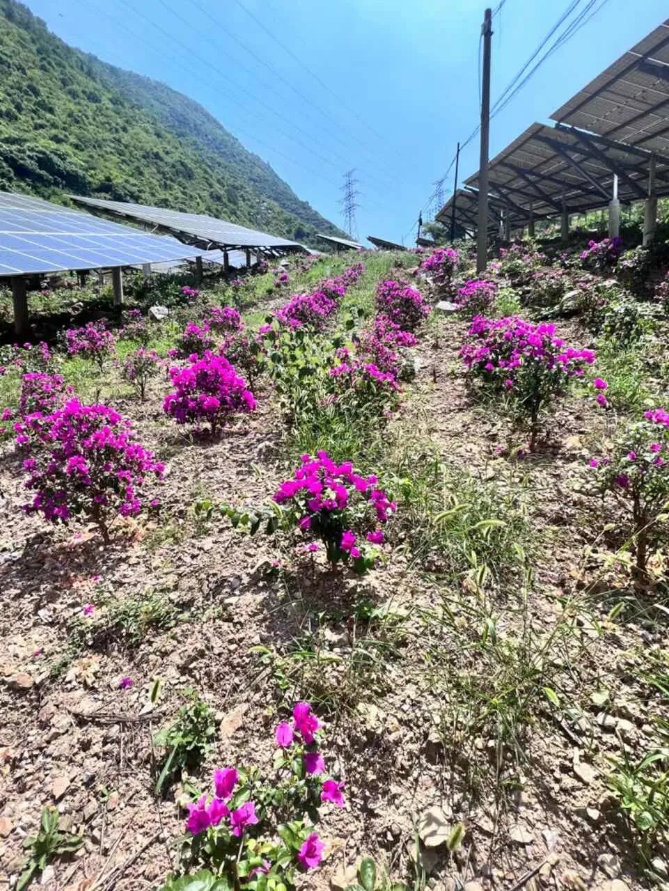 2024年,村“两委”进一步探索新型发展模式,在光伏板下种植培育三角梅,充分利用土地的同时也为光伏发电站增添了一道靓丽的风景线。现如今,昭君村光伏发电站三角梅花团锦簇,通过销售三角梅,既增加了集体经济,也美化了环境。通过借地生财,进一步盘活村集体资源,是昭君村壮大村集体经济的关键。