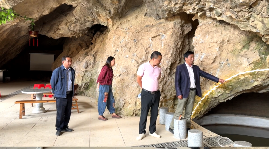 岩屋的院子离主线公路只有一步之遥。9月27日,几辆小车缓缓驶入,几拨人慕名前来游览、进餐。有人漫步洞中欣赏大自然鬼斧神工的天然雕刻画廊,有人驻足观赏池中的金鱼;有的跳着轻快舞步,唱着一首首红歌。