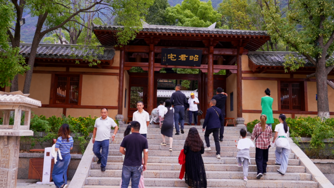 10月5日,记者来到昭君村景区看到,许多家长带着孩子游玩,听导游讲述昭君故事,游览昭君故居,体验穿汉服、推石磨、滑滑索等项目,让家长和孩子们感受到了浓浓的文化氛围。