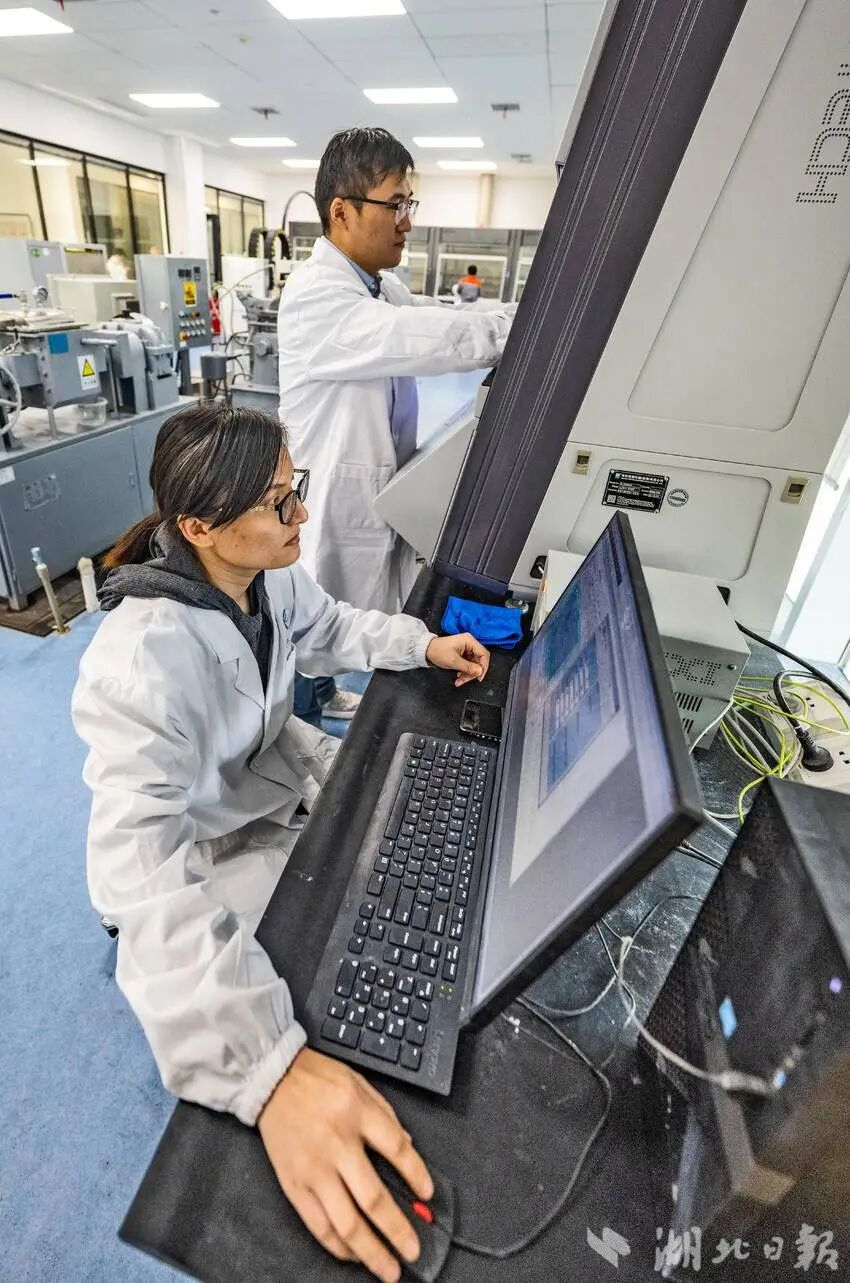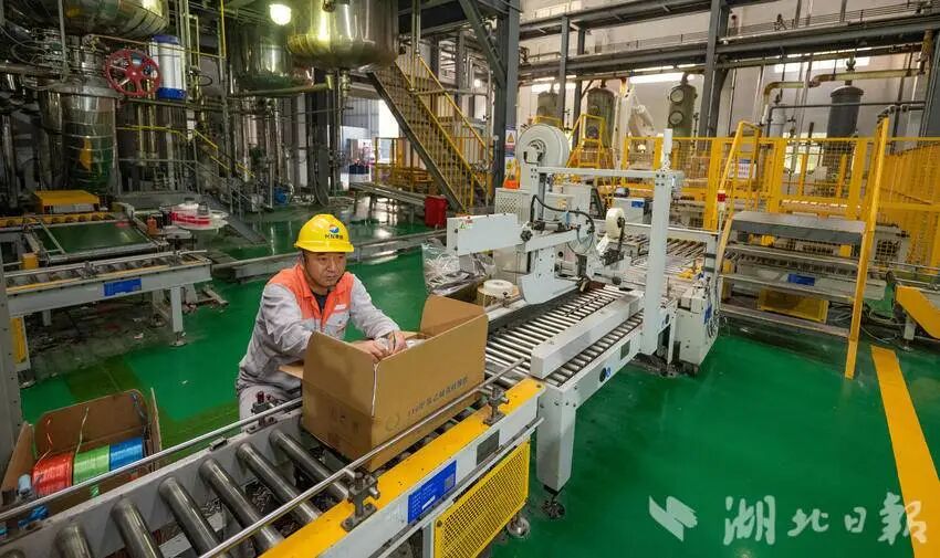 11月6日,在兴发集团新材料产业园110硅橡胶自动化生产线上的质检工人正在抽查下线产品。(湖北日报全媒记者 刘曙松 通讯员 王雷 摄)