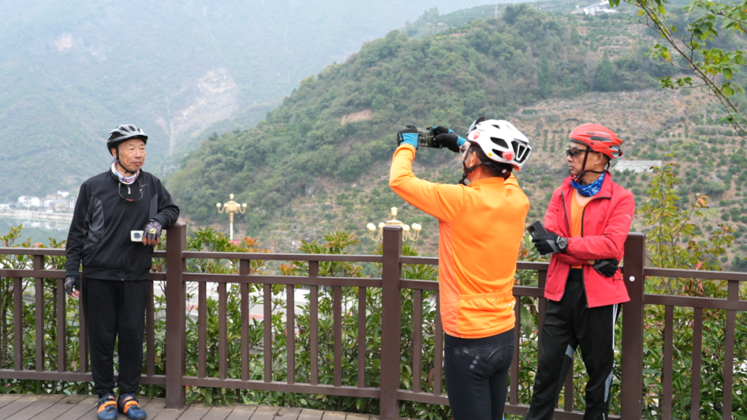 11月8日,当地来了一个骑行车队。郭辉忠是来自武汉市骑行车队中的一员,这是她第三次来到兴山骑行,每次都有新的体验,能够欣赏到不同季节的美景。这一次,她和骑友们从武汉出发,途径宜昌、巴东、神农架来到了兴山,他们一起穿过蜿蜒的水上公路。一阵清风吹来,散发着柑橘的清香。脚下的河水、高山的秋景、两岸的峡谷让他们身临其境,不禁发出连连赞叹。