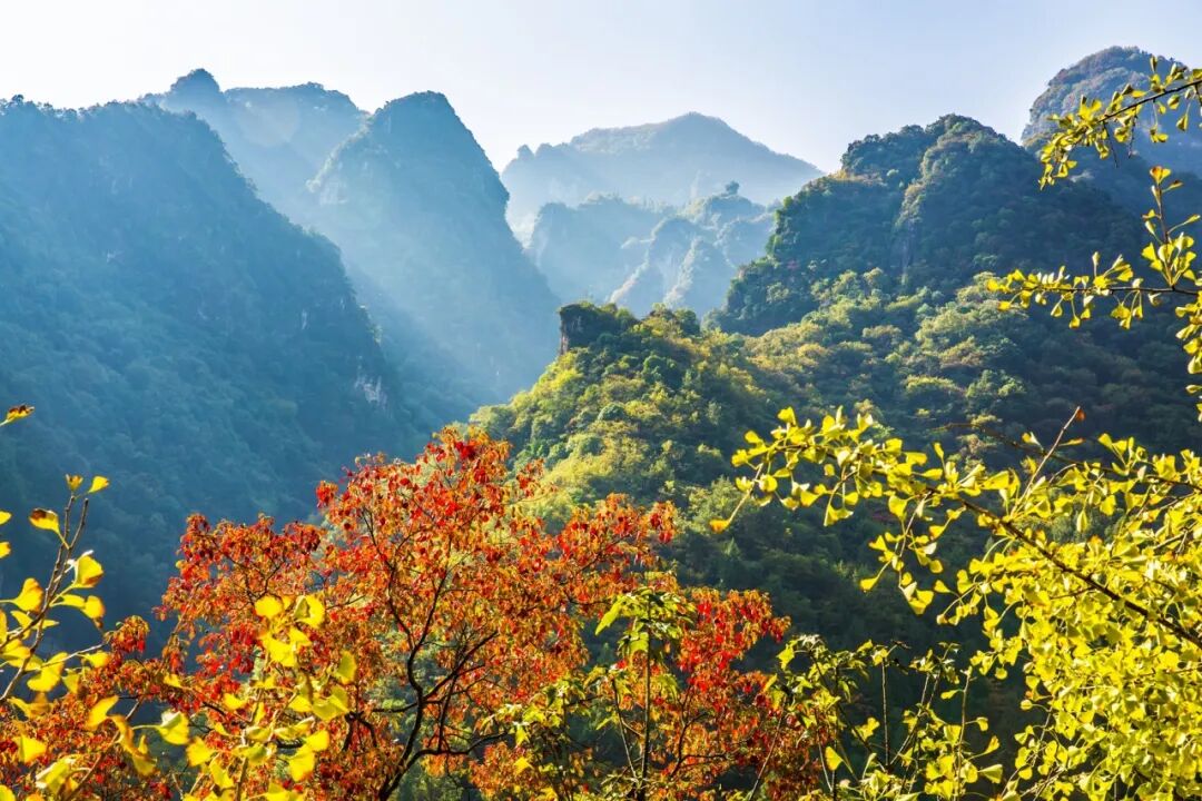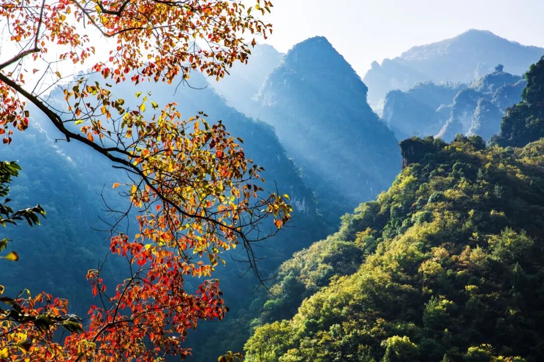 高岚无山不奇、无峰不秀、无石不异,且山连山、景挨景,山水相依相连,似凝云起舞,如浪涛飞溅。高岚的秋天色彩斑斓,魔幻般光影绘制成一幅天然画卷,谱写一首绝美的交响曲。