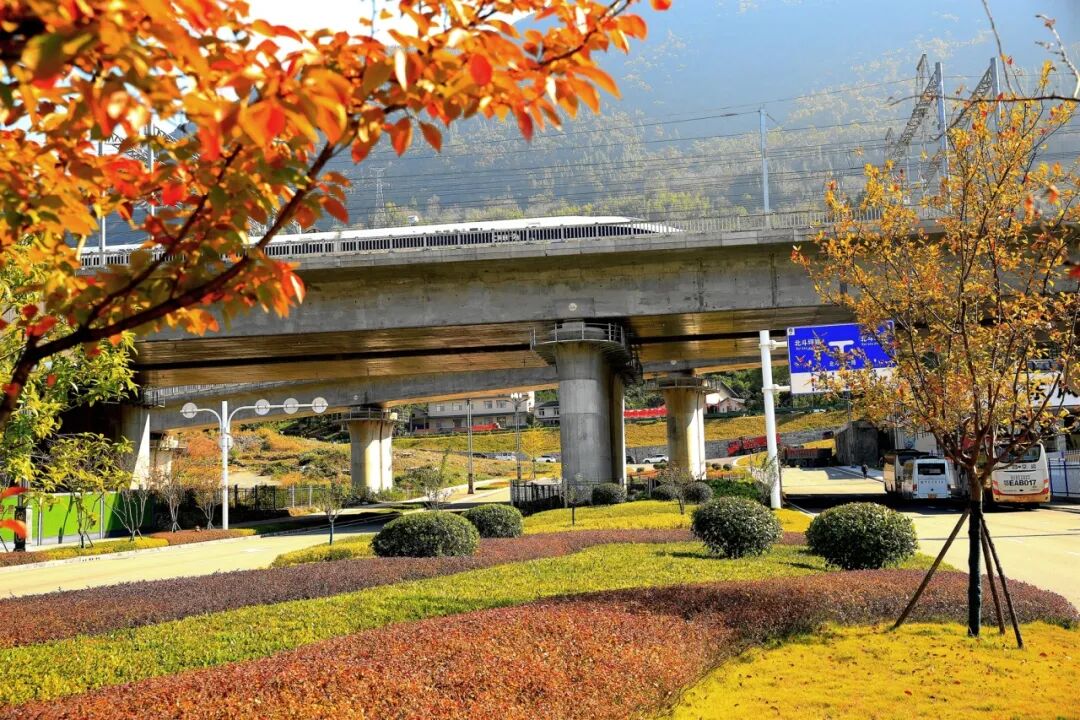 近日,一列列高铁呼啸而过,兴山高铁站外沿线色彩斑斓、格外耀眼,构成绝妙的画卷,给美人城增添一道亮丽的风景。