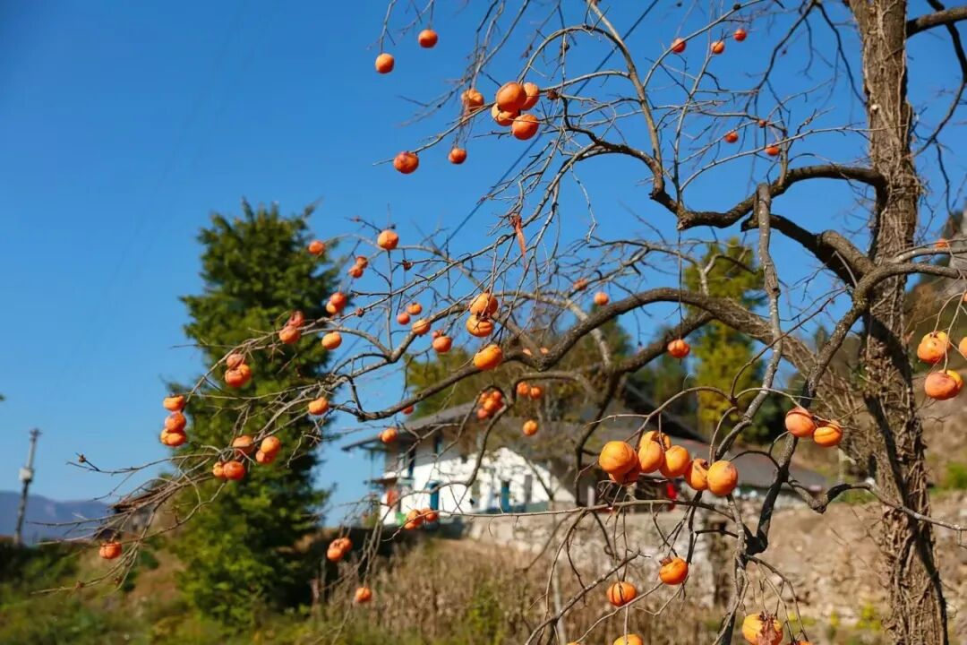 兴山的山野乡间,嶙峋的枝条上,都挂满了一簇簇、一丛丛,火红的柿子,把荒芜的山野点亮,清冷的秋风也驻足。满树红彤彤的柿子,在枝头上轻轻摇曳,装点寂静的小山村,慢慢诉说着岁月的故事。