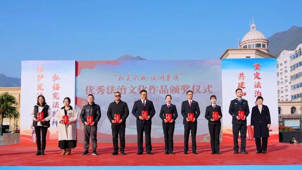 活动现场,举行了“省级法治文化建设示范点”授牌仪式,县人大常委会党组成员、副主任李晓晴,县人大常委会二级调研员、县文联主席张学元,县政协副主席、县工商联主席李艳魁出席活动并为优秀法治作品获奖者和获奖单位颁奖。相关单位展示法治建设成果。随后,现场还开展法治文艺演出及法律知识有奖问答,为群众提供法律咨询服务。
