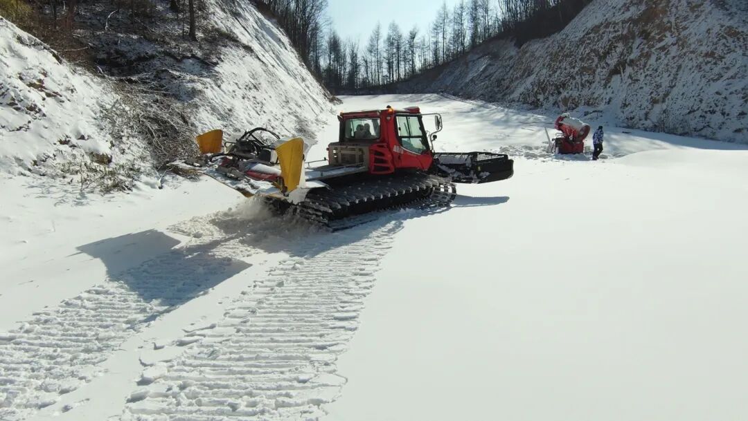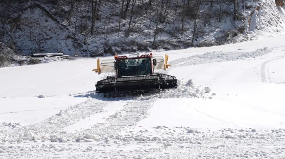 眼前的三峡云栖谷国际滑雪场已经是白雪皑皑,银装素裹。雪道上,造雪机不断喷出白色雪雾,在阳光下形成一道优美的弧线。压雪机配合作业,来回碾压,使得雪质变得软硬适中,更加适合游客滑雪。