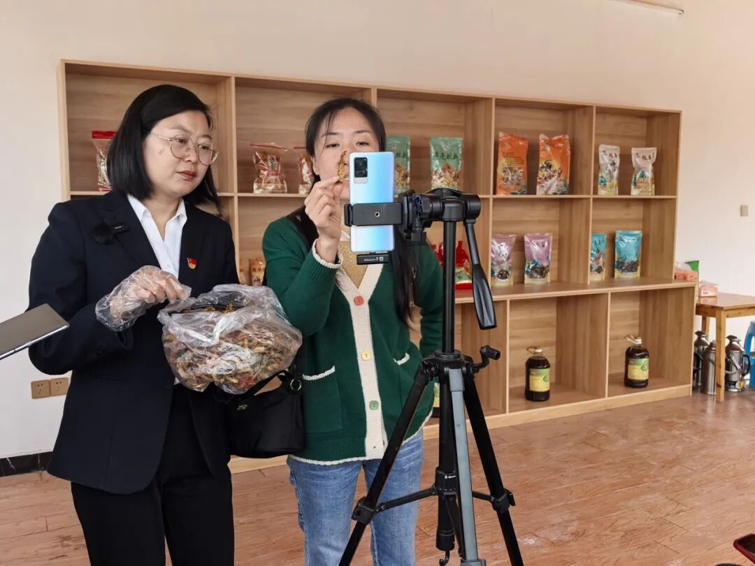 开放摊位前,腊蹄子、风干羊肉以及新摘的香菜、小葱等琳琅满目,吸引过往车辆驻足选购。“之前我们卖菜的话,要开10公里的路到镇上,现在家门口就能变成展销处,很方便。”只见仁圣村五组李大婶在手机记账软件上记下一笔,今日销售一斤干茄子15元,眉豆30元。