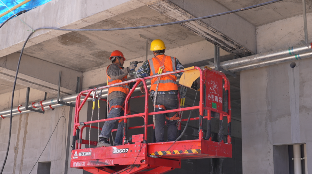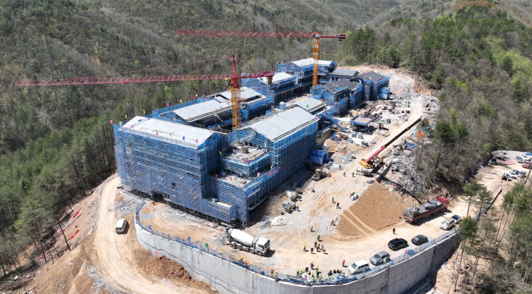 4月14日,记者在云雁山庄项目建设现场看到,塔吊挥臂,机械轰鸣,人头攒动,工人分组配合,快速砌筑房间隔墙、敷设安装消防管道,施工建设正如火如荼地进行。