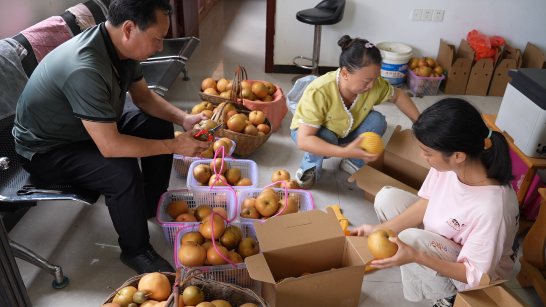 组织引领强根基。村党支部牵头成立兴村公司,统一流转土地、引进品种、技术管护,破解了散户种植“缺资金、缺技术、缺销路”的难题。村干部带头参与采摘、分拣,通过抖音、朋友圈宣传,让金果梨“未采先火”,订单纷至沓来。