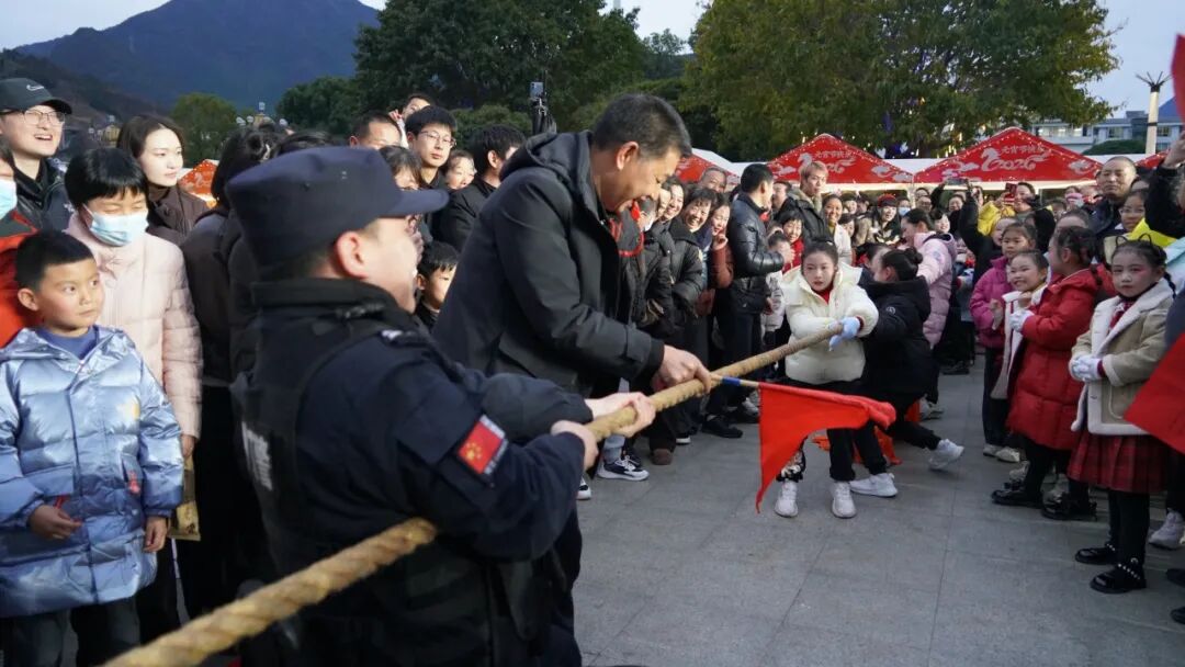 当晚6点,一场别开生面的趣味拔河比赛拉开活动序幕。6名特警队员与36名少儿轮番上阵,一根粗麻绳拉出了团结与欢笑,也点燃了现场气氛。