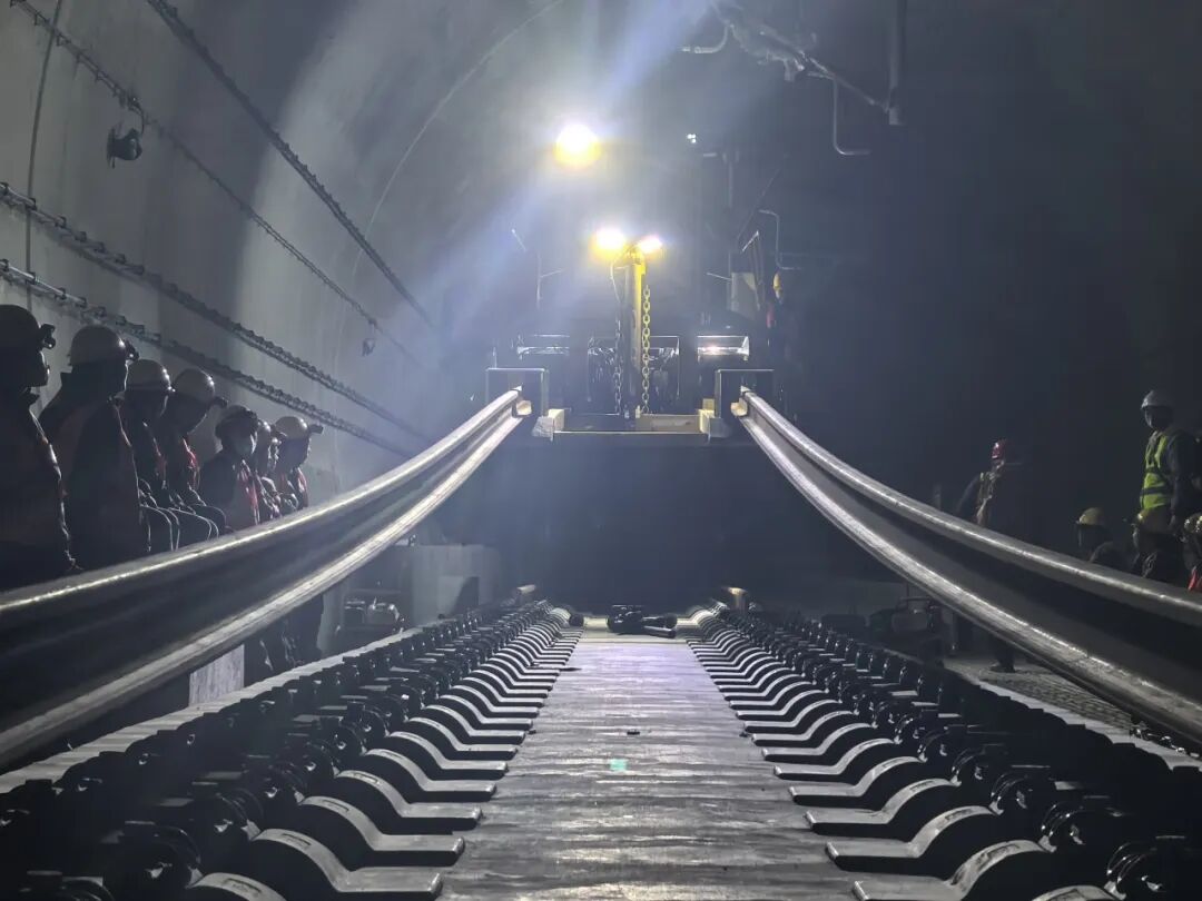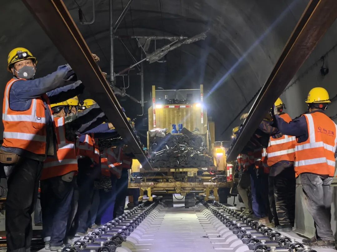 中铁三局线桥公司项目副经理赵新乐告诉记者,铺设的长轨由宜昌东铺轨基地装置长轨运输至铺轨现场,一根长轨是500米,每天铺设的效率是12小时七公里。