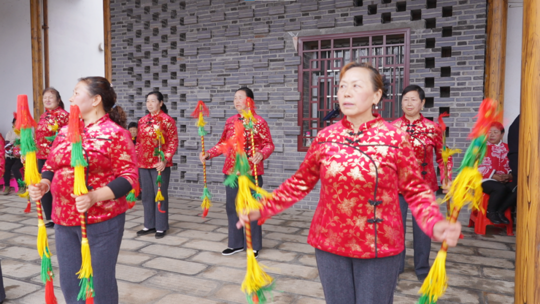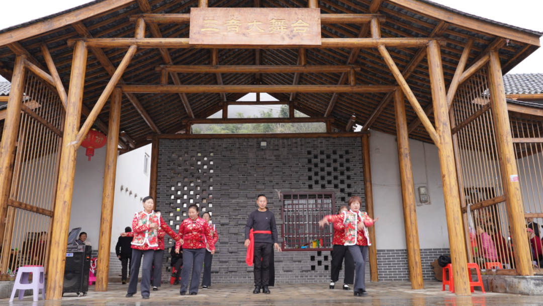 3月25日,阳光洒在黄粮镇户溪村的三音大舞台上,10多位老人身着鲜艳的大红袄,手持九子鞭,随着欢快的音乐节奏,认真地排练着节目。
