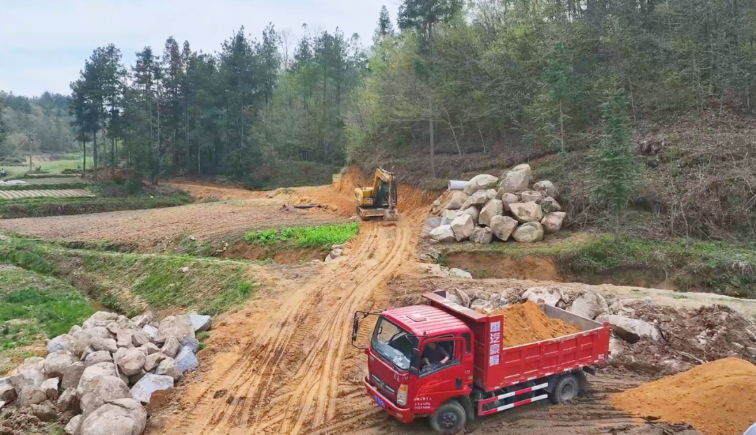 在大棚另一侧,挖掘机正忙着平整道路,不久后,一条新的水泥路将从主干道延伸至基地内部,解决药材运输难题。与此同时,配套的水电项目也在紧锣密鼓建设中,为毛慈菇的生长保驾护航,也为后续产业发展筑牢基础。